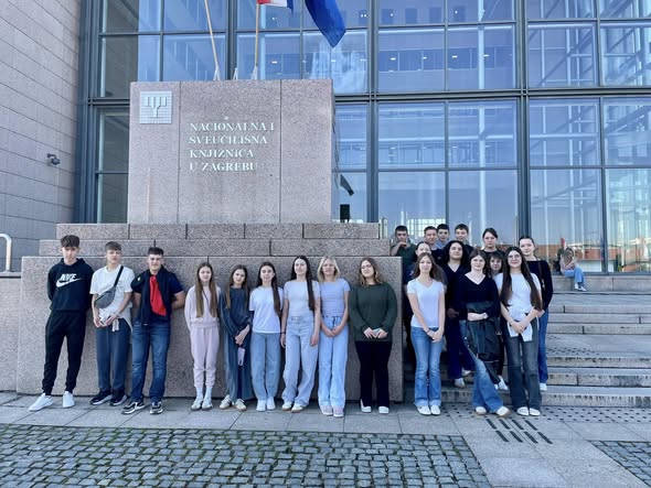 Učenici jezičnih B1 aktivnosti 5. ožujka proveli su dan na terenskoj nastavi u Zagrebu. Posjetili su Gradsko kazalište Žar ptica gdje su pogledali predstavu Pet nula, koja u središte radnje stavlja grupu osmaša suočenih s izazovom skorog upisa u srednju školu. Nakon kazališta obišli su Nacionalnu i sveučilišnu knjižnicu u Zagrebu te saznali brojne zanimljive činjenice o njezinu radu i bogatoj građi. Dan je protekao u ugodnom druženju, a terenska nastava bila je poučna, zanimljiva i inspirativna za sve sudionike.