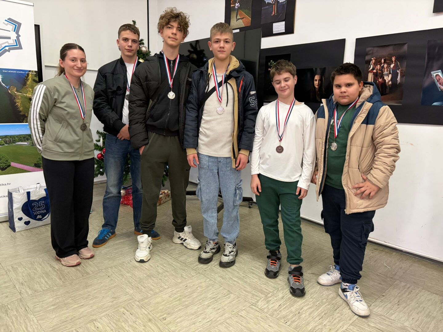 Sjajne vijesti obradovale su nas proteklog tjedna. Učenici naše škole Karlo Tomičić, Mykhailo Vats, Oleksandr Yermolenko, Hlib Zolotoverkhyi i Adrian Antun Herak osvojili su 2. mjesto na Županijskom natjecanju iz šaha u konkurenciji 9 ekipa. Čestitke od srca, želimo im puno uspjeha na budućim natjecanjima.